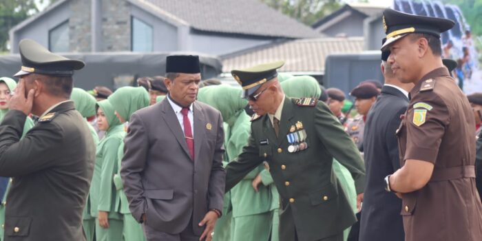 Sambas – Ketua Komisi I DPRD Kabupaten Sambas, Anwari, mengikuti upacara HUT TNI ke-80 yang di gelar halaman Kodim 1208/Sambas, Minggu (5/10/2025).